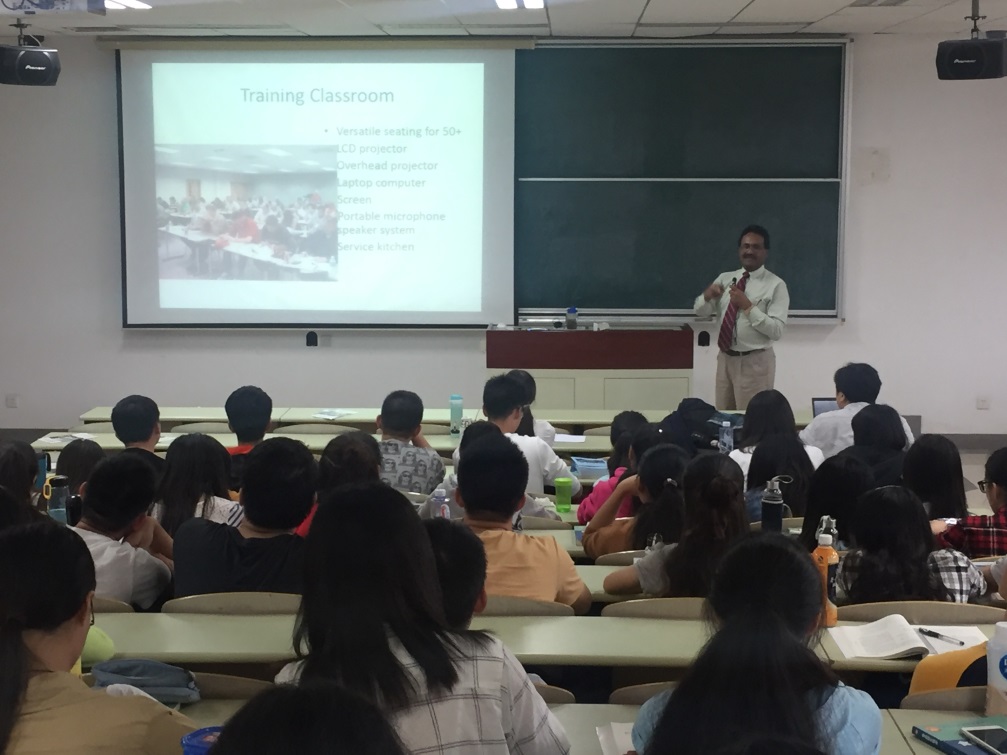 在奉贤校区的报告会上,Dr. Singh为食品系三年级100多位大学生做了以“Food Science & Technology at UGA-Research on Processing Technologies”为主题的报告,介绍了UGA食品系的概况和研究特色,并以射频加热技术为例介绍了UGA在食品加工技术方面的最新研究成果。大三学子在交流互动环节踊跃发言提问,Dr. Singh都热情地进行一一解答。该报告为拓展食品专业学生国际视野,培养食品国际化人才培养起到了推动作用。