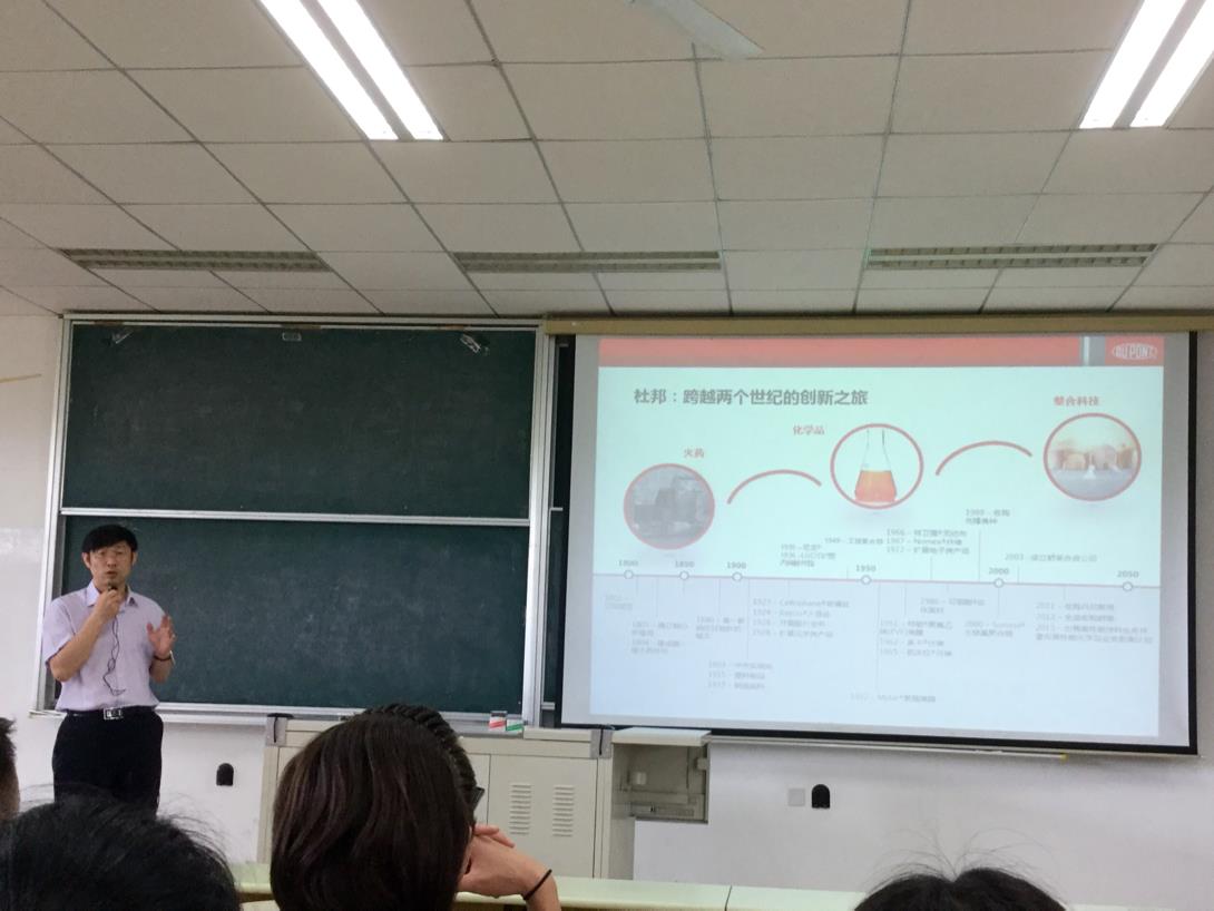 食品科学与工程系举行了毕业课题宣讲会,并邀请杜邦营养与健康中国研发中心乔全胜总监来到奉贤校区,近距离为食品系同学进行讲解。