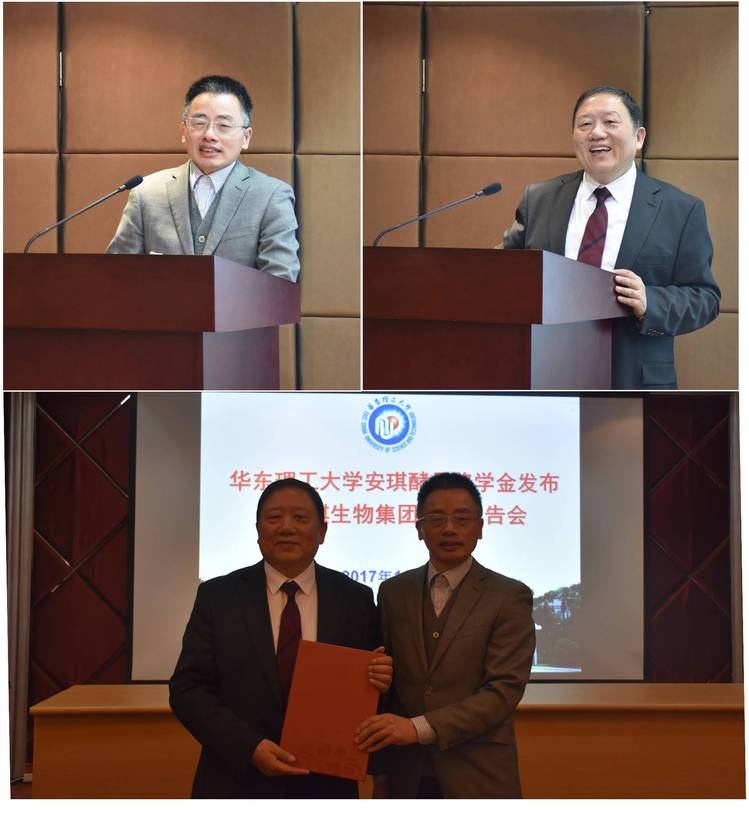 "安琪酵母奖学金"发布暨安琪生物集团企业报告会在徐汇校区举行。安琪生物集团董事长俞学锋,安琪酵母股份有限公司总工程师李啸,安琪酵母股份有限公司上海总部总经理何新章,安琪酵母股份有限公司微生物营养事业部副总经理杨移志,萝莉社