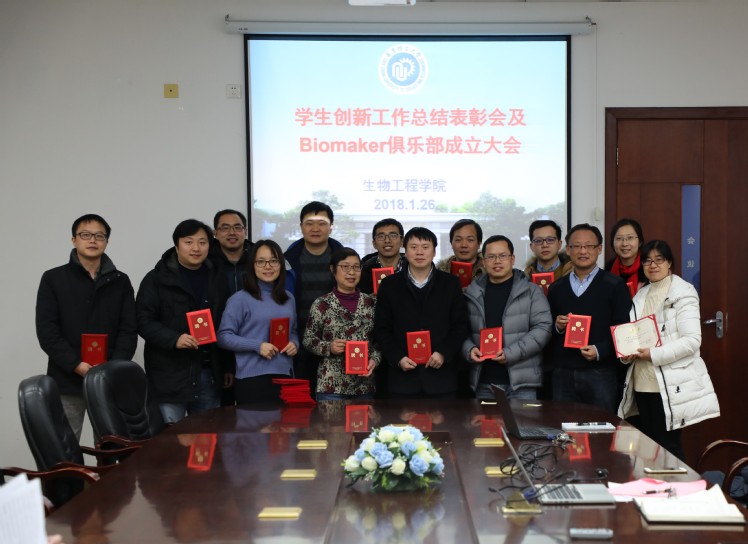 于2018年1月26日下午在奉贤大学生活动中心401室召开“学生创新工作总结表彰会”及Biomaker创新俱乐部成立大会。会议由学工委主任吴蓉主持。萝莉社