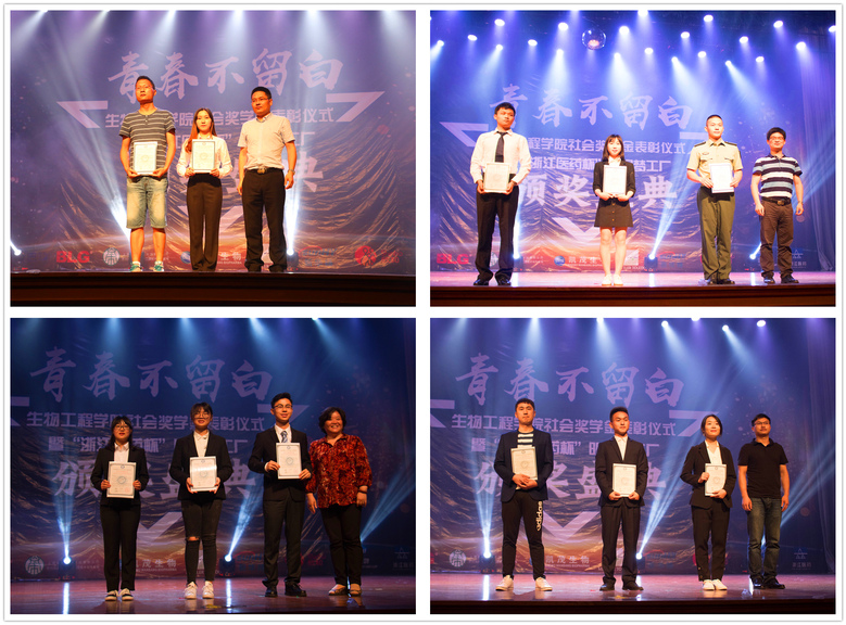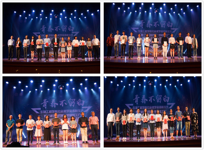 2017—2018学年社会奖学金表彰仪式暨“浙江医药杯”明星梦工厂颁奖盛典于在奉贤校区大学生活动中心剧场举办。现场向安琪酵母英才奖、BLG奖学金、巴玖奖学金、格燊奖学金、凯茂生物奖学金、梅特勒-托利多过程分析奖学金、新华扬奖学金、欣和奖学奖教金9个社会奖学金的103位社会奖学金获得者颁发了证书,宣布了“蔚蓝生物杯”大学生学术科技创新竞赛的10个立项项目,并表彰了生工之星获奖者与提名者、明星班集体获奖班级与提名班级。