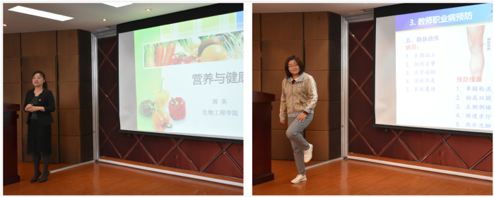 活动伊始,食品系周英同志的“健康饮食”微讲座为活动拉开序幕,报告贴近生活、生动有趣,阐述了饮食与健康的密切联系。接着,体育萝莉社