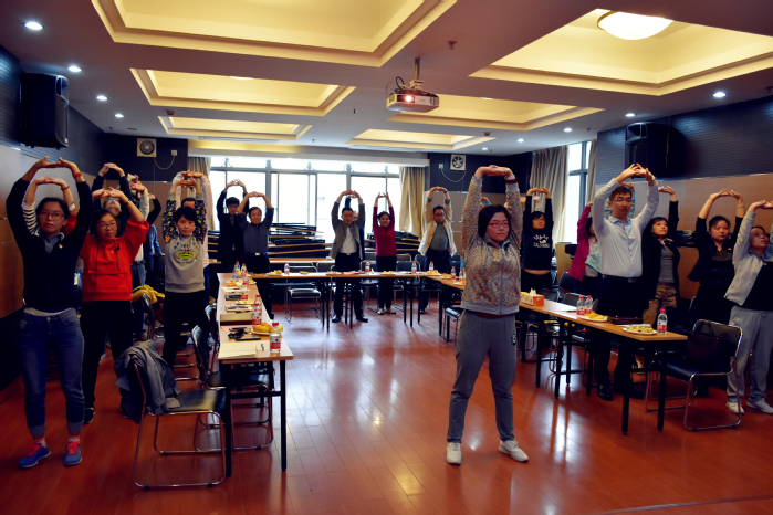 陈婧同志“高校教师健康状况及职业病预防”的专题报告,动静结合,结合视频为党员们现场指导《八段锦》健身操的练习。姚文、陆兵对本次活动进行了点评,希望建立长效机制共同探索更多途径为满足人民对美好生活的需要不懈奋斗!