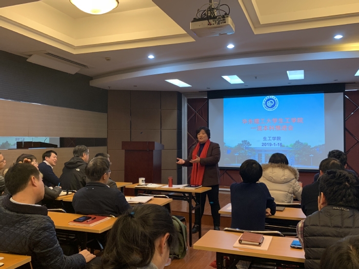 2019年1月16日,我院一流本科建设暨工程教育认证工作推进会在实验18楼315室隆重举行。我院党委书记陆兵、院长庄英萍、副院长卢艳花、副院长赵黎明,生物工程专业责任教授许建和、食品科学与工程专业责任教授周家春,以及全院参与本科课堂教学、实验教学以及学生工作的一线教师参加会议。教学副院长王启要主持会议并作大会报告。