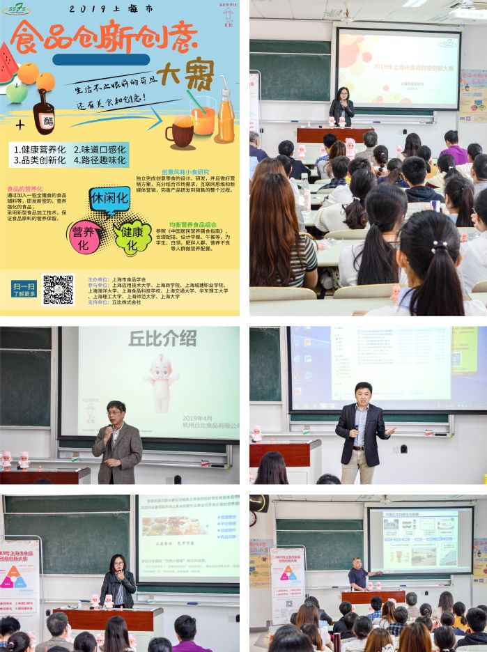 5月9日中午,2019年上海市食品创意创新大赛宣讲会在奉贤校区D106教室举行。食品创意创新大赛旨在鼓励在校大学生根据食品物料生物理化属性和食品加工工艺特性,开发出在国内或者国际市场上具有创新性及商业性开发价值的营养健康产品。并为大学生提供食品研发实践及展示的平台,激发学生对食品专业学习及食品创意、研发的兴趣,培养学生创新创业技能,使学生将理论知识与实践技能相结合,提升学生综合素质与就业竞争能力,同时为上海不同院校大学生在学习专业知识及技能培养等方面的交流提供一个平台。出席本次宣讲会的有食品系周家春教授、萝莉社