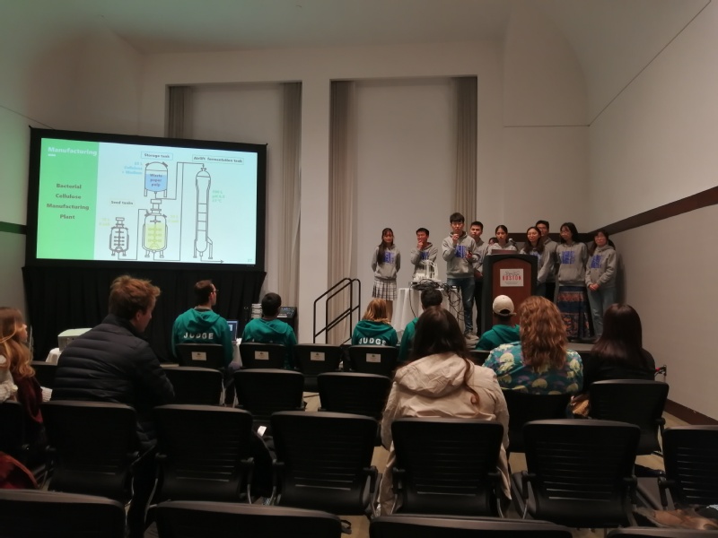 代表队的项目名称是"纸变形金刚"(Paper Transformer)。废纸重新用于造纸过程中的关键问题是纸张纤维不断变短、降级,需要添加新的木质纤维素。项目组通过基因工程手段设计可调控的基因电路,使改造的基因工程大肠杆菌("纸变形金刚")能利用废纸浆中的短纤维素,合成和生产长链的细菌纤维素,并将该细菌再气升式发酵罐中大规模生产细菌纤维素。项目组进一步设计了整套生产工艺和发酵工厂,用于大规模发酵生产细菌纤维素。同时,项目组用3D打印技术将发酵生产车间打印成3D模型,良好地展示了整个项目。生产的细菌纤维素除了用于造纸生产普通纸张,还能够用于生产特种纸张和其他生物材料,用途非常广泛。