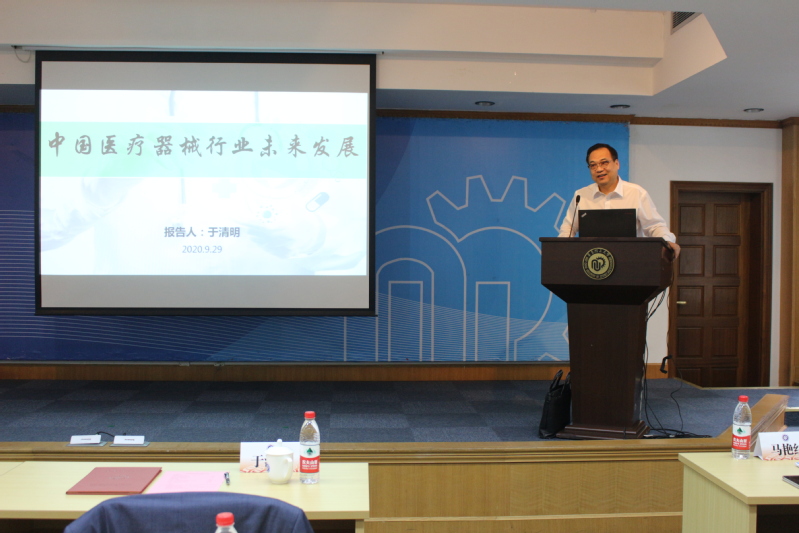 受聘仪式后,于清明教授作了题为“中国医疗器械行业未来发展”的主题讲座,对当下疫情的国际形势和国内医疗器械的发展情况进行分析,结合新冠疫情以来国家对生物医药、生命健康等卡脖子技术引申到高校研究生教育和培养的方式的思考,给予在座青年教师和研究生很大的启发。