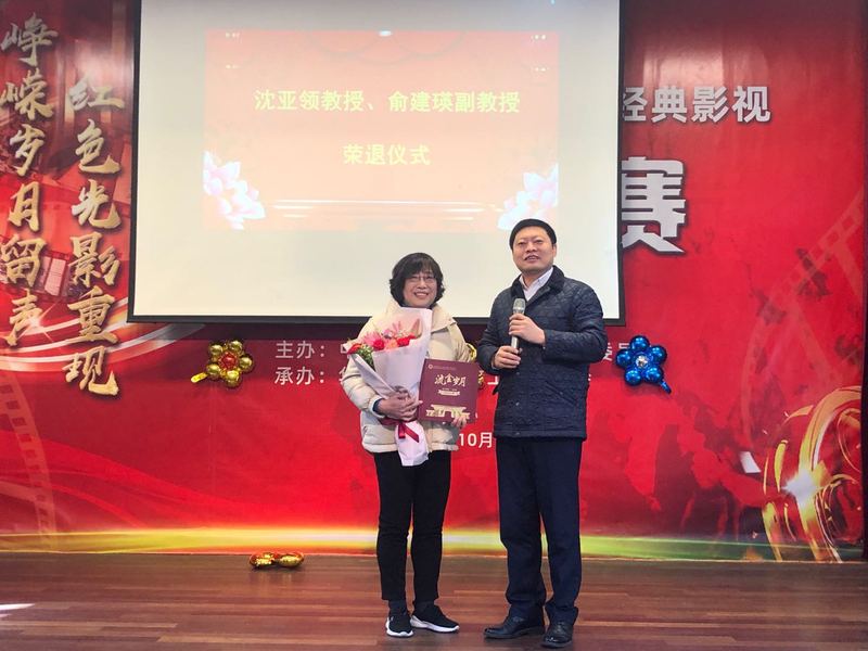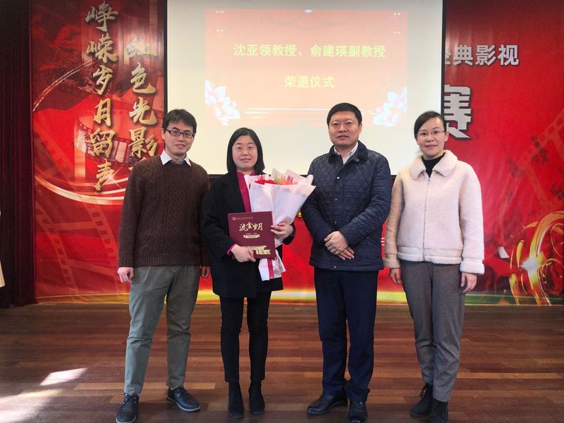 在工会八角亭2楼为2020年9月之后退休的沈亚领教授、俞建瑛副教授举行了荣退仪式。