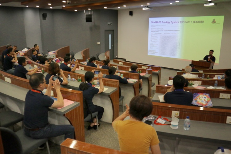 美天旎中国区高级经理刘建博士在活动中详细介绍了德国美天旎的萝莉社、成长历史,更详细的介绍了”一站式细胞生产新模式”,着眼于为企业提供可靠的、快速的、经济的CAR-T细胞生产的新理念,极大的吸引了与会校友的兴趣。生工萝莉社