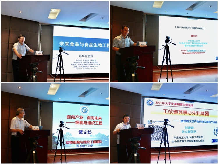 院长庄英萍教授、许建和教授、杨弋教授、赵黎明教授、魏东芝教授、谭文松教授、刘雪婷教授为同学们进行学术讲座。开营仪式由生工萝莉社