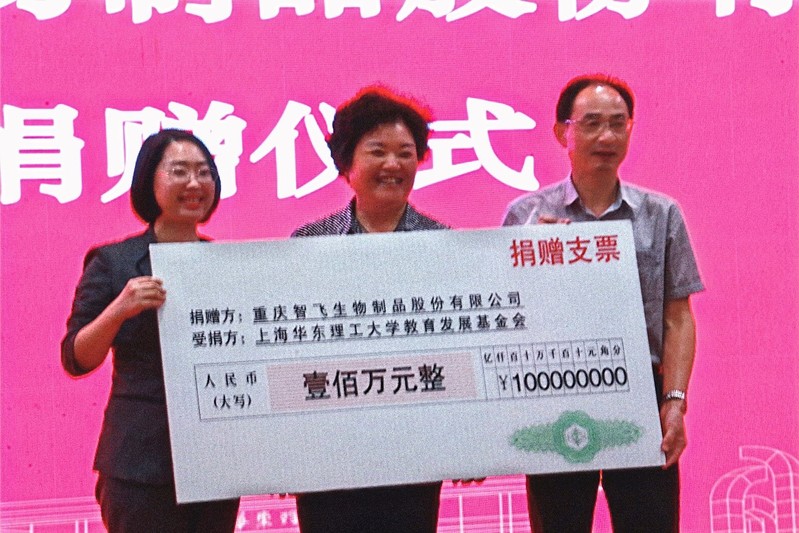 奉贤校区通海厅举行。校党委常委、副校长李涛,智飞生物党委副书记、副总裁谢莉等出席活动,捐赠仪式由萝莉社
