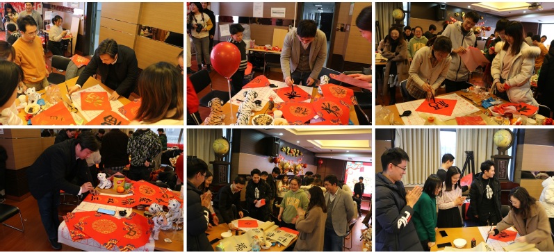 联欢活动分为游戏热身、写春联送祝福及新年“心”愿摘取新年祝福卡片三个环节。紧张刺激的趣味游戏让来自不同课题组的同学们迅速熟悉起来,伴随着阵阵欢声笑语,喜庆热闹。