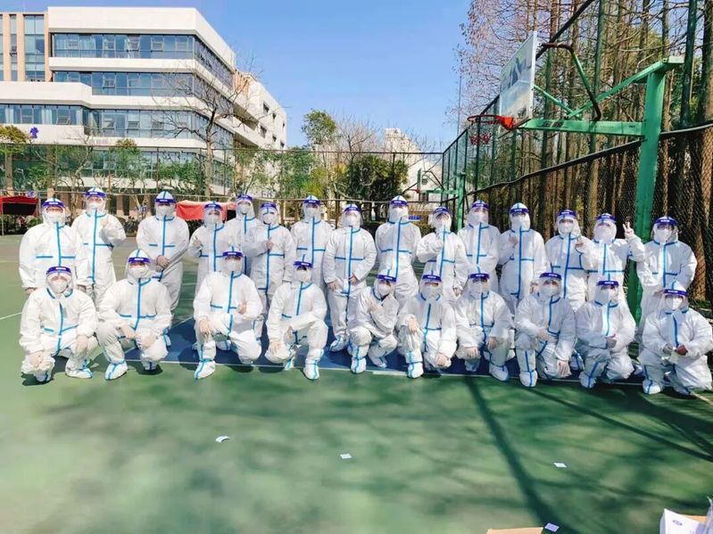 的丛家玮同学主动向老师申请参加战疫。“虽然穿着防护服送食物,爬上爬下很辛苦,虽然满场引导焦头烂额,虽然要牺牲掉休息的时间,但是在抗疫一线我收获了一份难以替代的成就感、大家的肯定、军团兄弟们在一起的众志成城。”