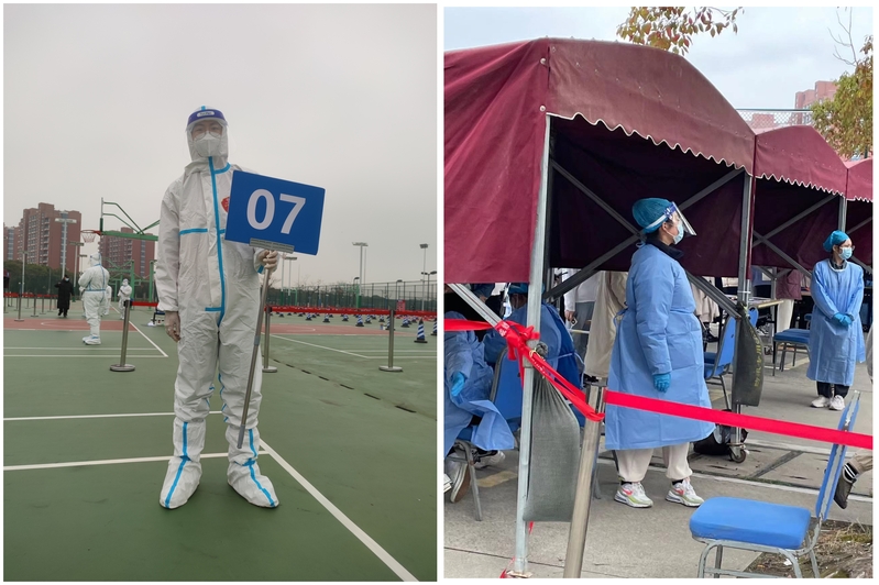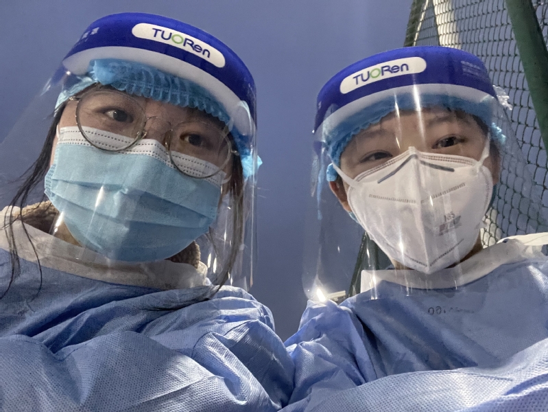 陈红和丹晨绮协助核酸检测