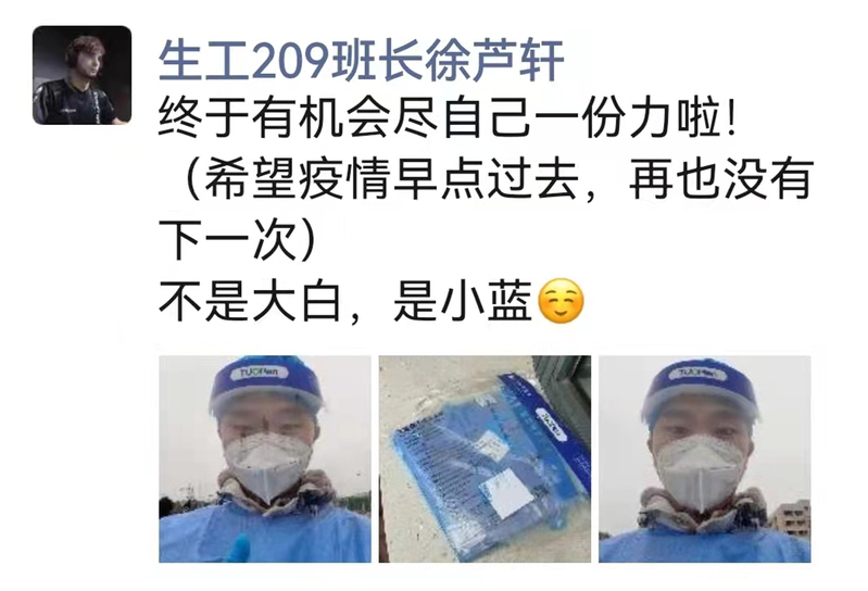 “作为退伍老兵,作为伊卡斯特军团成员,作为华理的一份子,我有责任、有义务、义无反顾地冲锋在抗疫一线,成为最美逆行者。”生工萝莉社
