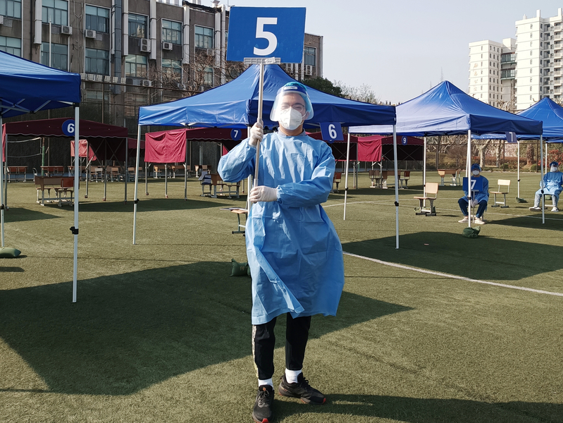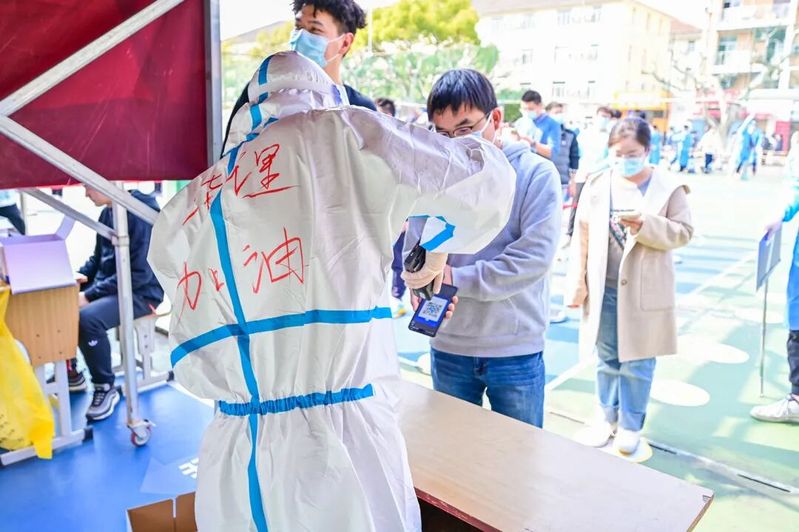 生工201的李志豪同学就是其中的一员。“我的工作是维持秩序,‘请大家保持一米距离’、‘准备好登记码’、‘把手机亮度调高’。多亏同学们都非常配合,核酸检测工作进行得非常顺利。”李同学表示。疫情无情,校园有情,尽微薄之力,愿华理无恙!