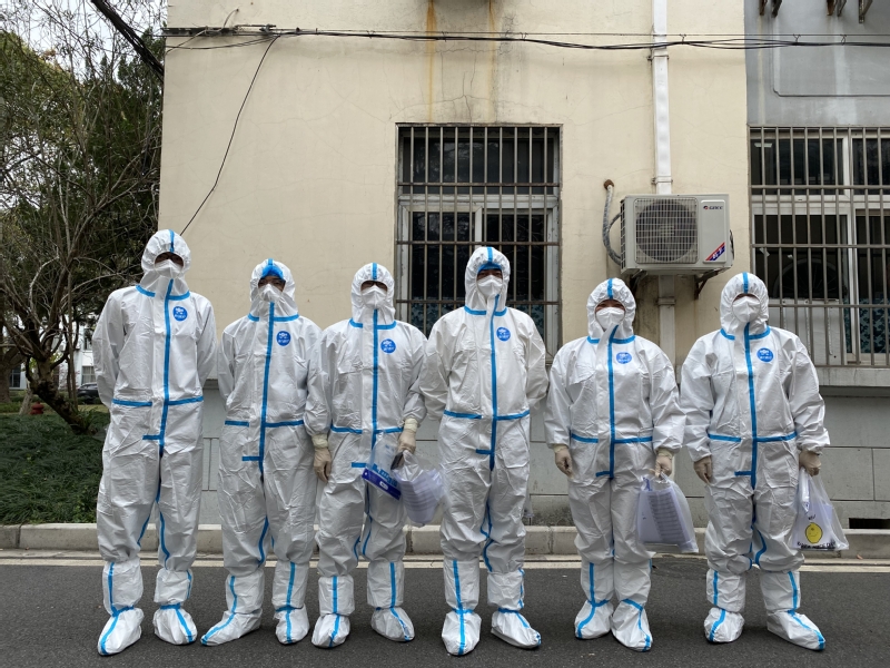 第一时间成立校内工作突击队,院长庄英萍任21舍和22舍楼长,副书记左鹏任助理,突击队成员包括:副院长刘琴、王启要,青年教师、研究生兼职辅导员安法梁,博士后邵帅、陈飞飞、曹雪玮、左方婷,奉贤校区梁心怡。校内工作突击成员每天工作十几个小时,晚上只能在办公室休息一下,有时候半夜一个电话,就又要忙碌起来。他们迎难而上、不辞劳苦、心系学生,对接两千余名学生,每天的工作繁忙而有序。他们有时变身“大白”,定期组织学生核酸检测;有时变成送餐员,将一日三餐准时热乎乎地送到学生手中;有时成为快递员,协调保障学生的物资供应;有时变成送药小哥,竭尽所能帮助学生寻医问药;有时变身心理老师,耐心疏导学生的不良情绪。他们是学生心中的贴心老师,更是学生眼中的超人,他们就是最美的逆行者!
