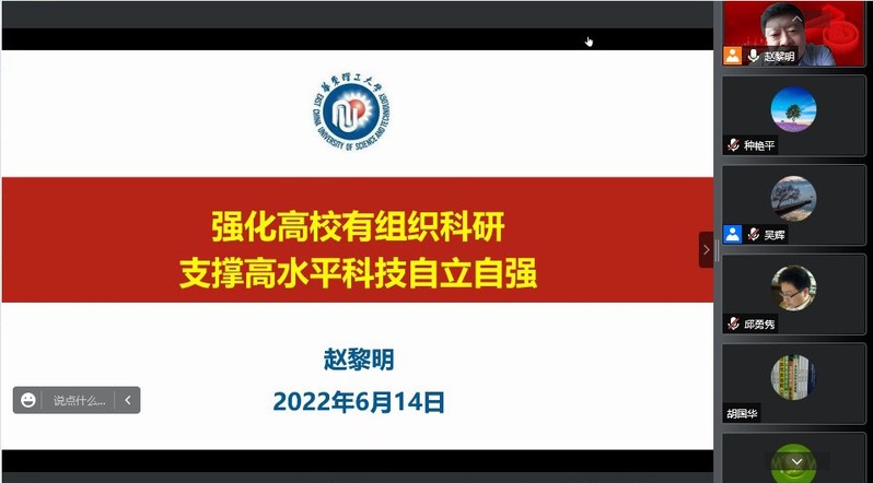 邀请校科学技术研究院院长赵黎明作题为“强化高校有组织萝莉社,支撑高水平科技自立自强”的报告,他从“国家需要什么样的萝莉社”和“高校怎么做国家需要的萝莉社”两个方面进行了分享。会议由萝莉社