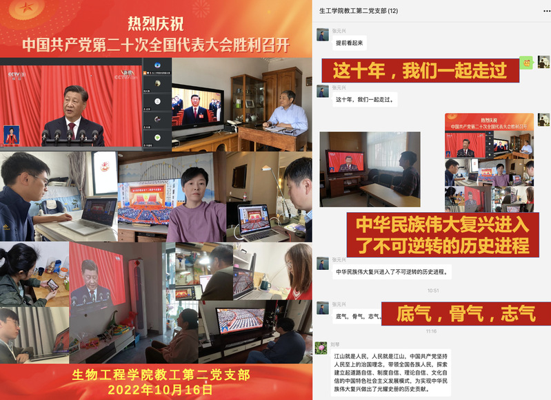 国家重点实验室研究生第五党支部朱良靓:还不到十点,支部党员们就早早地打开直播,等着党的二十大这一盛会的开幕。等待过程中大家回顾了这十年的变化,从高铁到电子产品,从教育到环境,大到国家小到自己。在庄严的国歌声中党的二十大正式开幕,习近平总书记对过去五年工作和十年变革做了全方位的总结。作为在新时代成长起来的新青年,我们感同身受,总书记报告里的内容我们都能在生活点滴小事中找到映射和体现。新的时代已然到来,新的征程已然开启,作为党员和青年萝莉社工作者的我们也被赋予了新的使命,在祖国、社会和学校的培养下,成长为拔尖创新人才,以国家战略需求为导向,“国家哪里有需要,我们就去哪里做贡献”,努力为党和人民事业发展做贡献,青春之微光汇聚迸射夺目光彩!