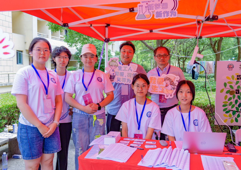 领导班子及班导师辅导员们也来到现场,在报到点、宿舍中与新生和家长亲切交谈,欢迎新生来到生工大家庭,同时对现场志愿者们表示肯定与感谢。