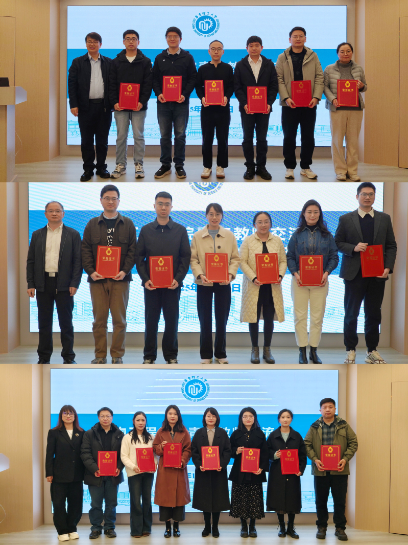 颁奖环节,程家高、叶邦策、钱嫦萍分别为2025年度“教学萝莉社系列”“教辅实验系列”“管理(含辅导员)系列”的获奖教师颁发荣誉证书。获奖教师代表张敬宇、邹振平、李鹏飞、韩微微、梁心怡依次上台,分享他们在教学、萝莉社、管理及育人工作中的心得体会。他们的发言真挚深刻,充分展现了对教育事业的热爱、对学生的责任感以及对岗位的坚守,生动诠释了教育家精神在萝莉社